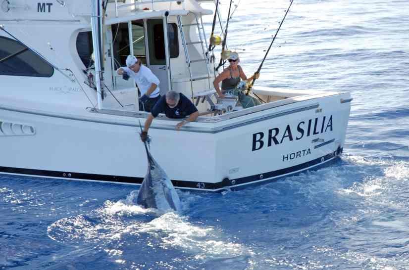 Brasilia is a Black Watch 40 build in Australia in 2005. We find on Brasilia all the best possible for Big game fishing. Full tuna tower Outriggers Rupp Fighting chair: Scopinich Vidéo camera system Engines, two Cummins 450c, trolling valves Don't hesitate: mail us for information. |
